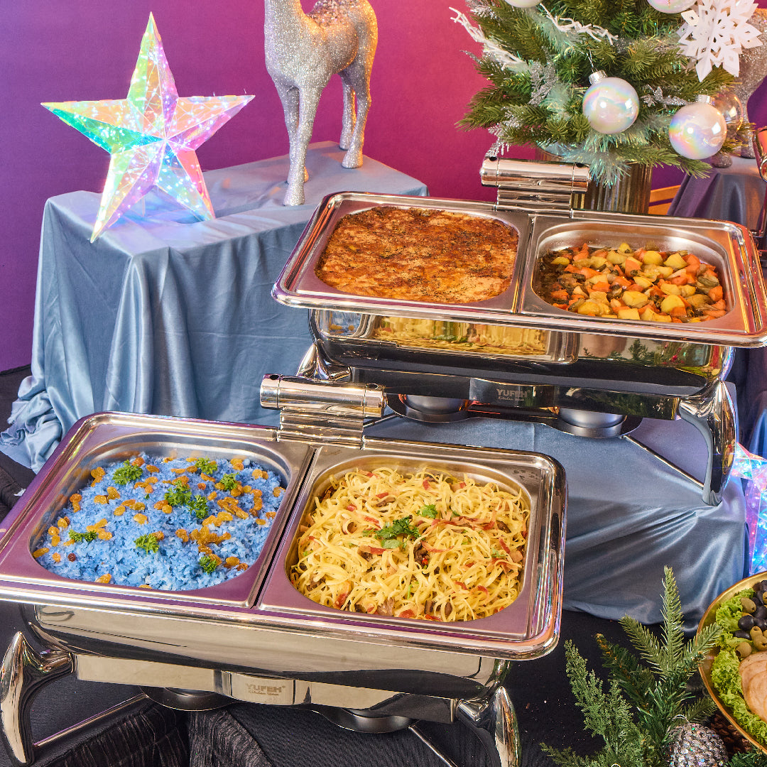 Step into a holiday spread that glows with nostalgia and festive flair. Gourmetz Christmas Buffets bring together glossy roasts, twinkling sides, and desserts that sparkle brighter than fairy lights β all crafted to delight every guest. From intimate family gatherings to grand office parties, our buffets turn every celebration into a radiant, Y2K-inspired Christmas experience. β¨